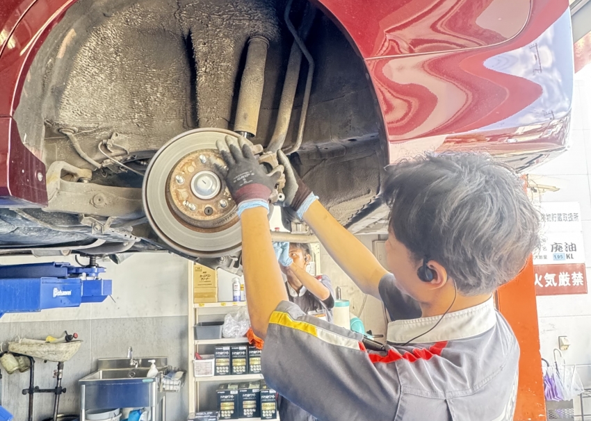 スタッフさんは車体をジャッキアップし、「この箇所にヒビが入っているので交換をお勧めします」と言って一緒に目視しながら確認の上で交換の同意を取ってくださり、納得感が増しました。