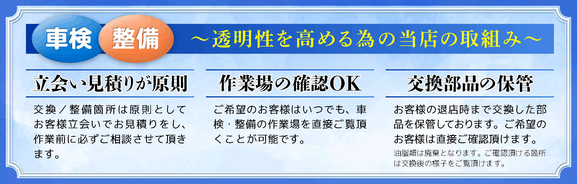作業を担当して下さったスタッフさんも説明が的確でわかりやすく、交換が必要な箇所とそうでない箇所の案内をしっかりと行って下さったので好感が持てました。お客様の気持ちに寄り添った案内をされる方だと感じました。